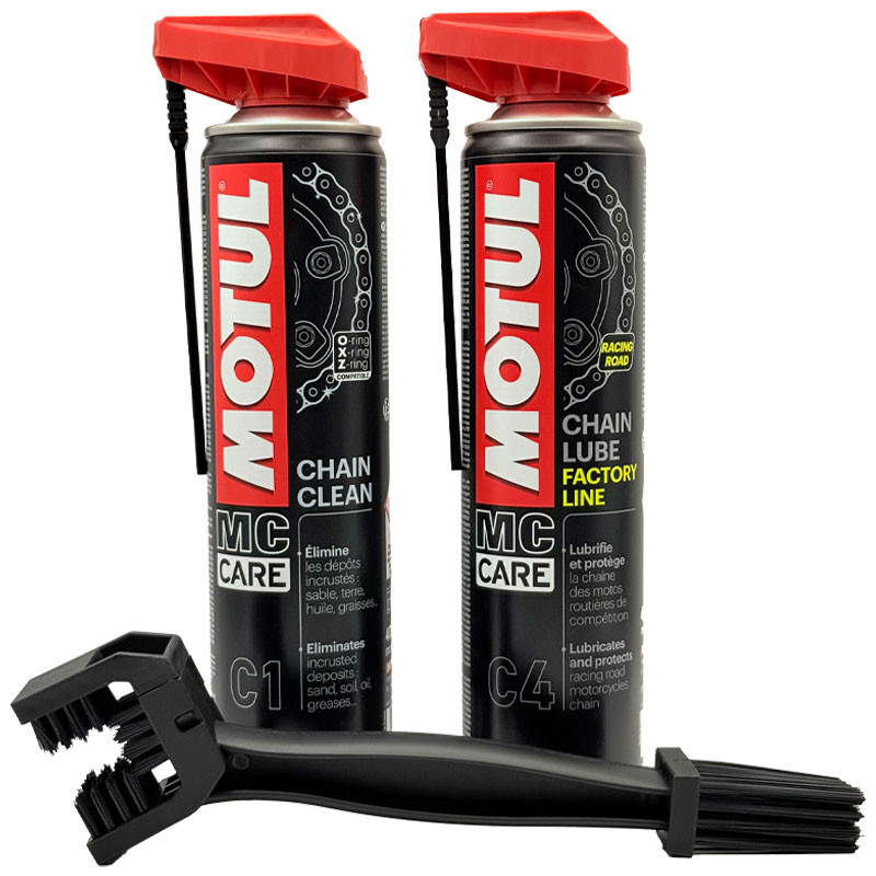 Pack entretien chaîne moto racing avec brosse intégrée