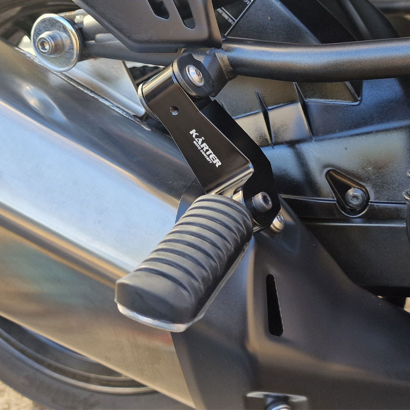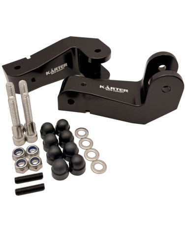 Avec les extensions KÄRTER, les reposes-pieds arrières sont abaissés pour permettre au passager d'avoir une position plus détendue et confortable sur les longs trajets. Cela permet aussi de monter sur la moto aisément. Fabriquées en alu usiné dans la masse, et anodisé de couleur noire. Ce kit est livré avec toutes les pièces de fixation nécessaires. Le support d'origine n'a pas besoin d 'être modifié. Les valises KAWASAKI peuvent être utilisées sans restriction.